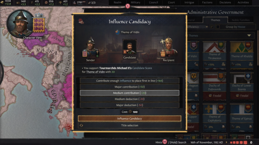 Roads to Power wprowadza także nowy typ rządów inspirowany Cesarstwem Bizantyjskim. Zamiast klasycznego systemu feudalnego pojawia się rozbudowana biurokracja oparta na urzędnikach i wpływach.